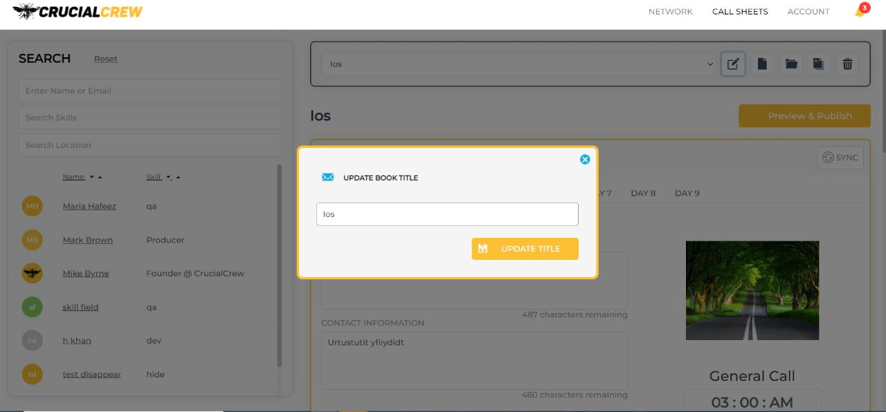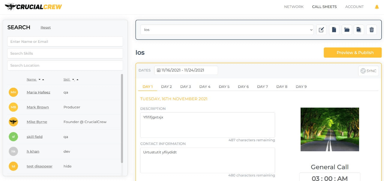 Its features include scheduling meetings for required number of days at chosen locations with people from your created networks. Call sheets are made to convey the meeting objectives, goals, required individuals, selected dates, availability of each user, ability to acceptor reject etc. Meetings can be scheduled to discuss projects with potential workers, conduct informational seminars or to interact with people to expand their networks, and can also go on for more than a single day.