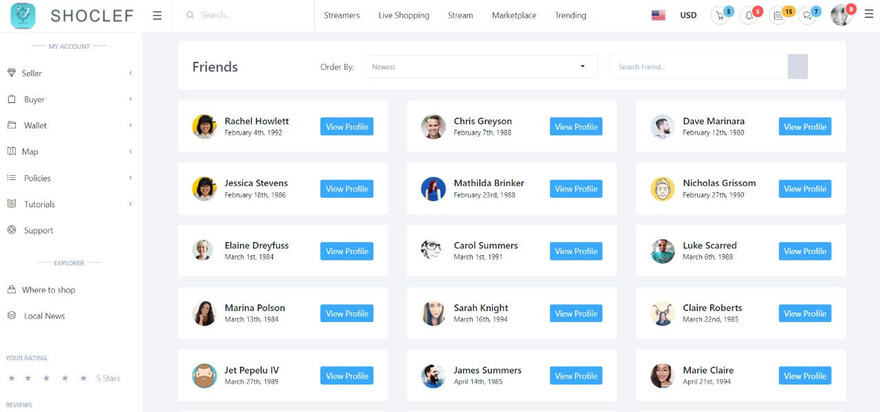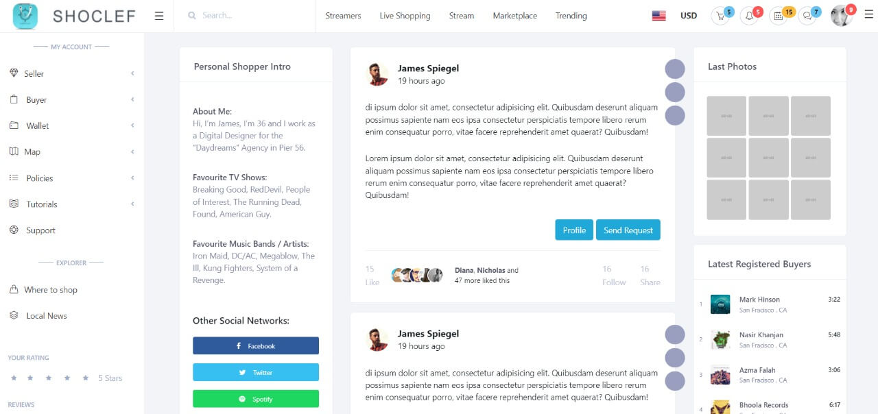 Shoclef has multiple features. Its social features include the ability to create profiles, newsfeeds, like, follow, comment, share, add friends, create posts etc. Two types of profiles can be registered on this platform- a buyer, who can purchase from online stores or a seller, who can upload a product on their digital store.