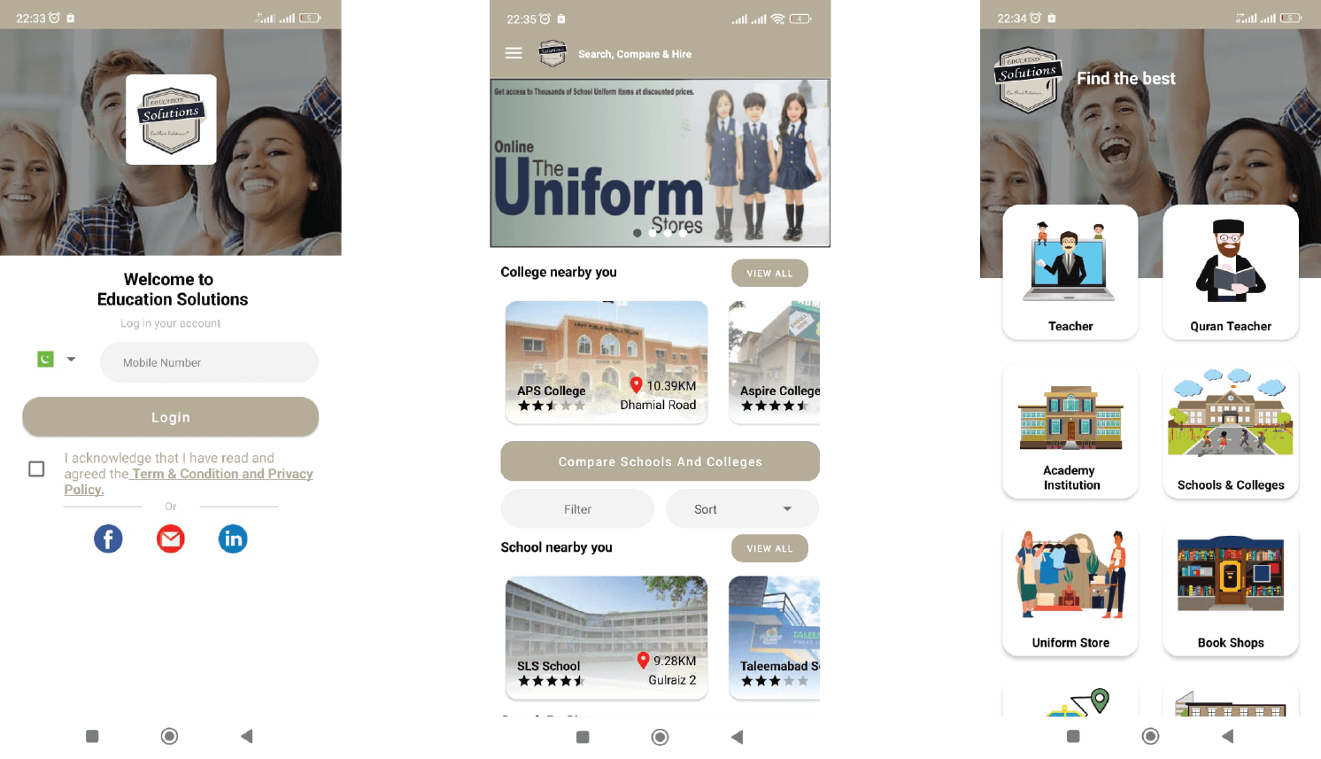 Tutor is an android app and website to search for and hire teachers and students. Teachers, students, academies, schools etc. can all register themselves on it. They will add their detail such as skills, specialization, class range, subjects, schedules, timings, and facilities such as libraries etc. Students can search for a teacher or academy etc. based on location for example within a10-mile radius. Search results will display relevant teachers/schools. Before direct communication between the student and teacher, they will have to pay a small fee to the app. After payment, they can accept each other’s requests and directly communicate based on their mutual understanding.